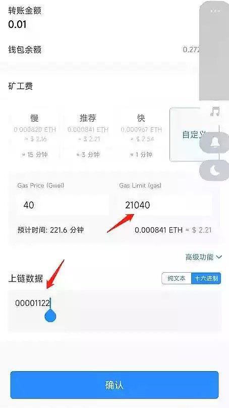 如下圖,操作了tp錢包,在轉賬時加入了兩個0字節,兩個非0字節。按上述公式計算:
