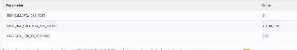 假設Nzeros代表交易負載中,字節為0的字節總數;Nnonzeros代表交易負載中,字節不為0的字節總數。可以通過下列公式計算出該交易的固有成本,參考黃皮書6.2章節:
