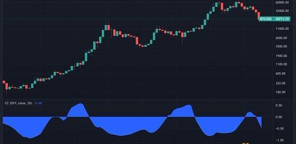 它還與美元指數DXY呈負相關。同時與納斯達克和標準普爾正相關。