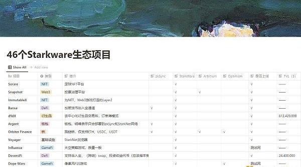 ?46個StarkWare生態項目來源:嗶嗶News