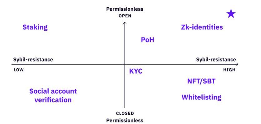 目前有一些現有/即將推出的方法:KYC、白名單、社交賬戶驗證、NFT/靈魂綁定代幣和?zk-identity/零知識證明的身份驗證。