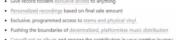 目前在音樂和Web3領域主要集中在為藝術家和他們的粉絲提供小規模的解決方案,這只需要簡單的文檔來幫助人們瀏覽新的支持和互動模式。如果一個藝術家能夠通過NFT銷售賺到足夠的錢養活自己和自己的藝術作品,那就是一場勝利。