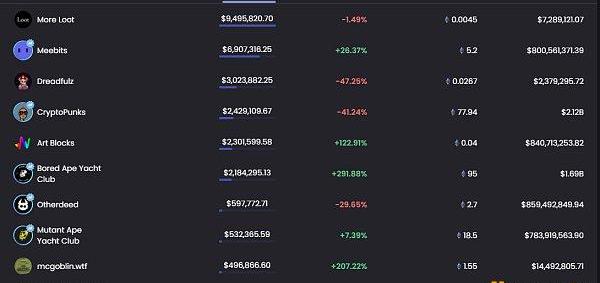 24小時內銷售漲幅前十的NFT數據來源:NFTGO