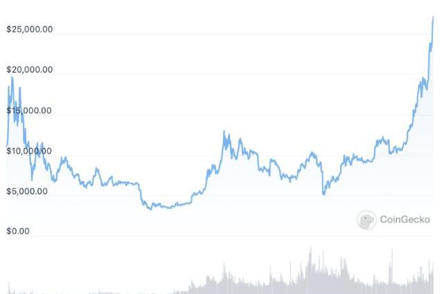 在4月中旬創下歷史新高后不久,比特幣略有回落,其價格最終在三個月內跌至29,000美元的低點。