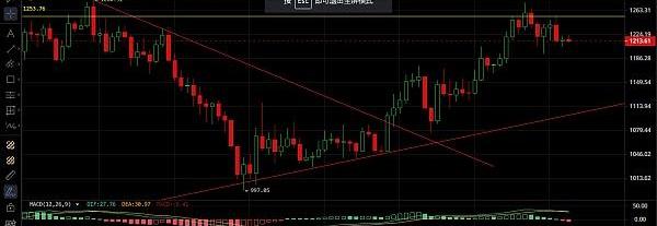以太坊昨日文中給出的空單順利下行跌至1193一線,恭喜跟上昨日思路的朋友完美到達第二止盈獲利60點,目前幣價在1217一線震蕩,四小時級別來看,整體幣價呈震蕩盤整姿態,下方中軌支撐昨日回落低點1190一帶,上方陽線高點1247附近。KDJ三線開口向下運行,MA雙線水上形成死叉。結合小時級別來看,整體幣價有直接下行走出回落跡象然KDJ指標超賣有多頭反彈上行修復指標跡象,綜合來看日內不破1255反彈就是空,思路反彈高空為主低多為輔,1230-1240空,目標1200-1180,多單可以現價做個短多,穩健1200-1180,目標1230-1250