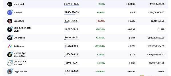24小時內銷售漲幅前十的NFT數據來源:NFTGO