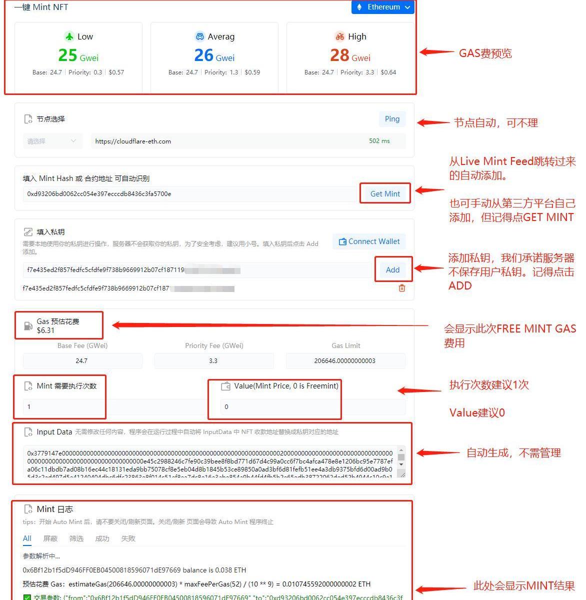 提示:目前錢包鏈接狀態還在完善,建議使用私鑰mint。