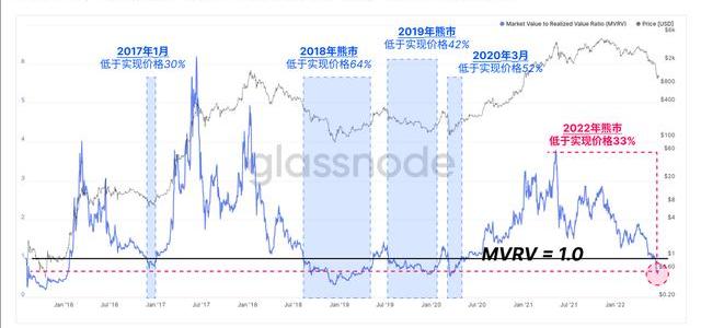 現貨價格低于實現價格交易并不常見,在過去六年中只出現過三次。最近的兩次事件是2020年3月的新冠疫情危機,以及2018年11月的投降事件,這兩次事件都為該熊市周期錘煉了底部。