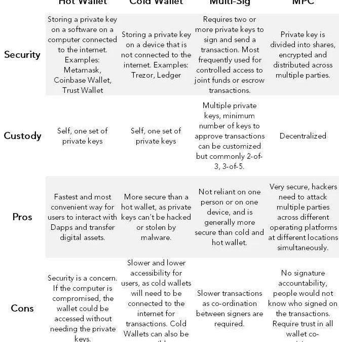數字資產托管經歷了許多演變,從只有熱錢包到現在的熱錢包、冷錢包、多重簽名等等的混合體。MPC是托管方法的最新迭代,隨著技術變得更加成熟,我們將看到MPC可能會在鏈上和鏈下被采用。