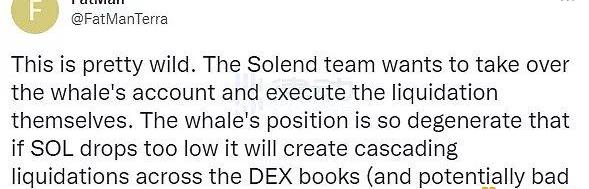 Terra研究員FatMan認為,「雖然是為了協議的安全和健康,Solend使用自己的自由裁量權來行動。但我真的不能同意這一點,感覺像是重大違規——這已經超出了建議的范疇。」