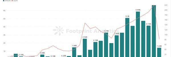 5月份加密市場募資總額為14.3億美元,月度同比下降78.6%。