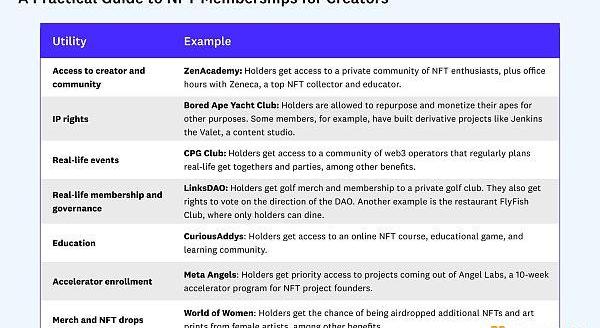 以下是說明NFT會員項目如何提供長期效用的其他示例: