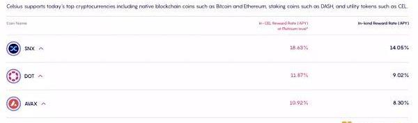 in-CelReward,存入一種Crypto資產選擇用Celsius平臺幣CEL計算利息,整體APY更高。