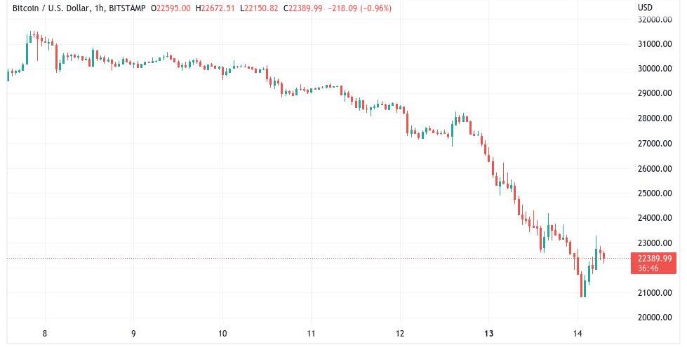 然而,最糟糕的暴跌是為加密貨幣保留的,因此,從本周初到撰寫本文時,BTC/USD下跌了22.4%。
