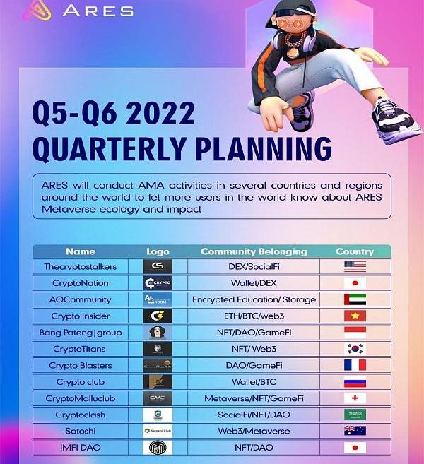 最近我們打算在全球12個國家和社區在進行AMA,包括一些機構在接洽合作事宜。目前ARES的全球布道社群已超過300個,我們計劃在未來的5天左右結束所有的招募工作。不排除提前結束的可能。