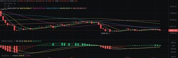 XRP/HKD-2.71%BTC延續前兩日震蕩行情,從BTC熊市開始六日基本為橫盤盤整行情,現在在日線震蕩區間內部,如再次突破區間方向如何選擇?BTC日線級別,KDJ向下發散,MACD低位金叉,K線延續前兩日震蕩行情,目前在震蕩下軌;4小時級別,KDJ值25附近粘合,MACD低位紅色實心轉為空心,K線在29700附近橫盤盤整;1小時與15分鐘依舊橫盤,少動多看,等待行情走出。