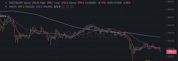受加密貨幣市場震蕩以及SEC調查風波、涉嫌洗錢報道的影響,BNB最近24h跌幅超8%,最近報價280美元。