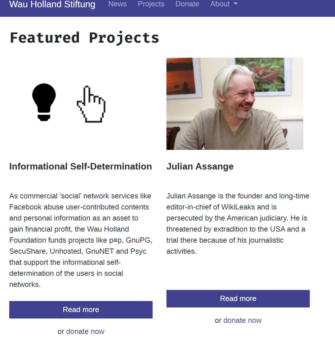 WauHollandFoundation是一個注冊在德國的非盈利基金會。該組織成立于2003年,組織名稱為了紀念ChaosComputerClub的聯合創始人WauHolland。該基金會旨在幫助人們應對新的技術環境下出現的監視、風險和機遇,并在推動信息自由的項目上付諸努力。