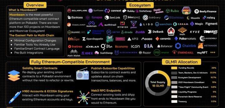 Moonbeam于2021年12月17日作為平行鏈加入Polkadot,是Polkadot生態系統中與以太坊最兼容的智能合約平行鏈。