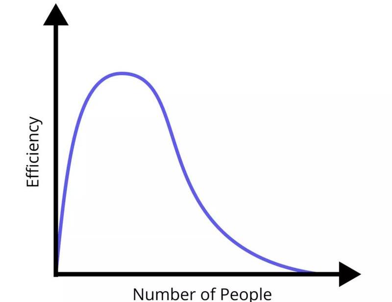 工作組的效率與規模的關系呈現為一條正偏態分布的鐘形曲線。雖然很明顯5個人一起工作比2個人好,但10個人并不一定比5個人好。因為在試圖從DAO的更大的受眾那里獲得幫助的同時,你會發現溝通想法和需求,以及追蹤記錄成員貢獻本身就是一項艱巨的任務。所以理想的情況是在開始考慮要執行的任務之前,就應該先確定好工作組的最佳人數。