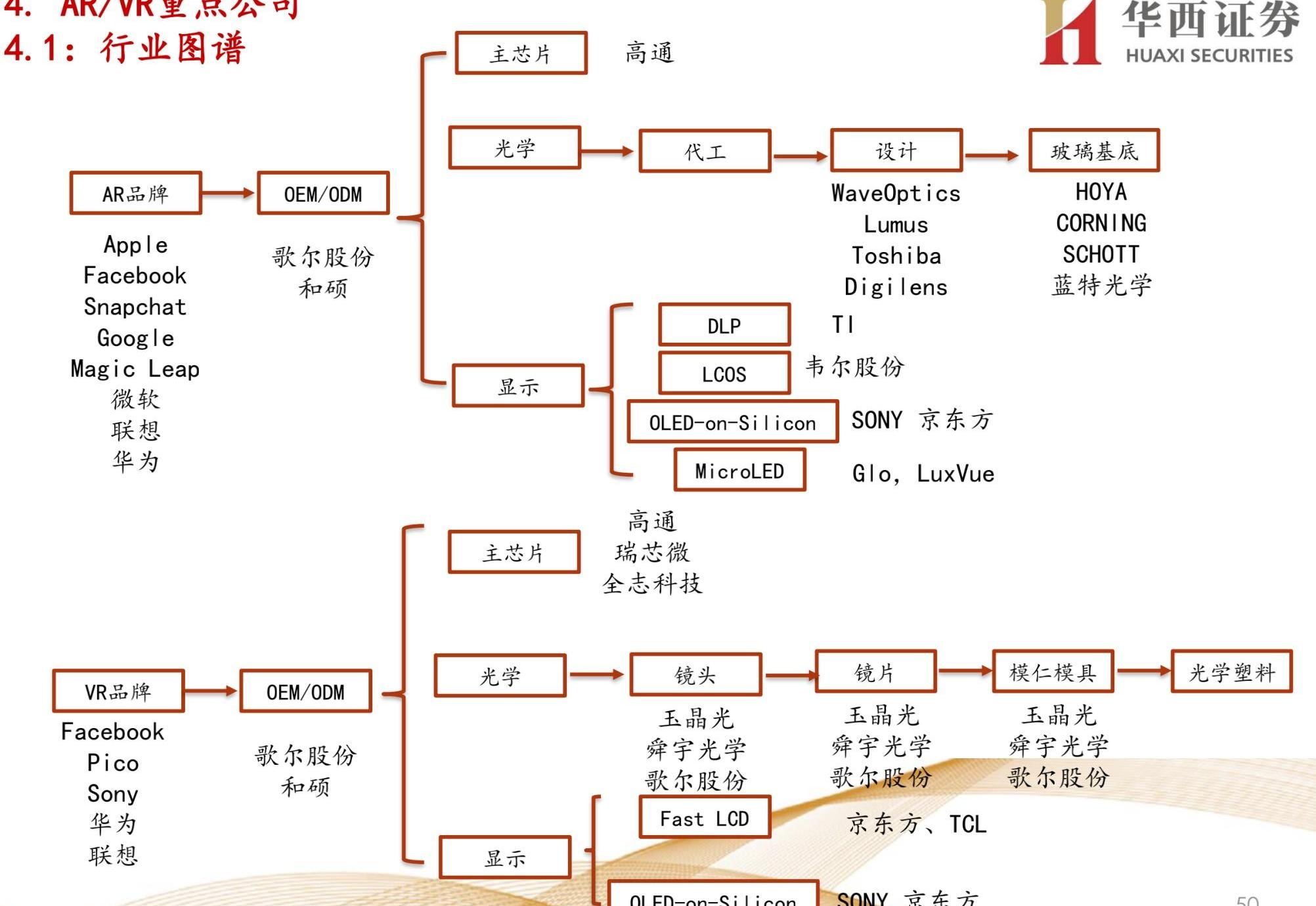iPhone的“黃金十年”,鑄就一大批“果鏈”企業增長神話,包括富士康、和碩科技、廣達電腦等等。而VR/AR行業的產業鏈環節和智能手機大體相似,包括硬件、軟件、內容制作與分發以及應用與服務四個環節,主要區別在于智能手機應用面向個人消費者,VR/AR除個人消費者外,還滲透到各行各業的應用中,因此在應用環節相對復雜很多。