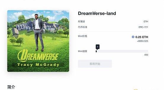 在不久前,DreamVerse簽約了NBA球星麥迪,同時他也在DreamVerse中認購了一塊土地來搭建自己的莊園。從此次發行的土地NFT宣傳圖中不難看出,DreamVerse發行的第一批土地NFT就是圍繞麥迪周圍的土地,并且是以盲盒的形式出售。也就是說,在這批土地中,用戶可以以極高的性價比來獲得麥迪周圍的土地,和他成為鄰居。相信這不僅滿足了普通用戶通過土地進行創造的欲望,更是實現了很多麥迪粉絲的夢想。