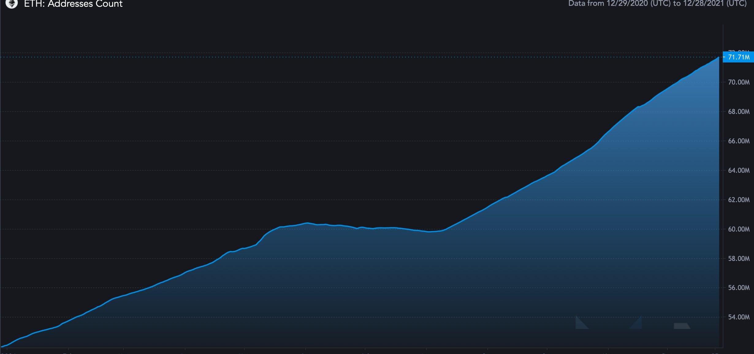 但隨著人們在這個橫向市場中不斷轉向新的敘事機會,以太坊活躍地址一整年都停滯不前。