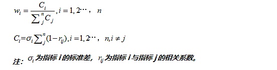 客觀賦權法可排除主觀干擾,本報告選擇CRITIC客觀賦權法確定各指標的權重。第i個指標的權重: