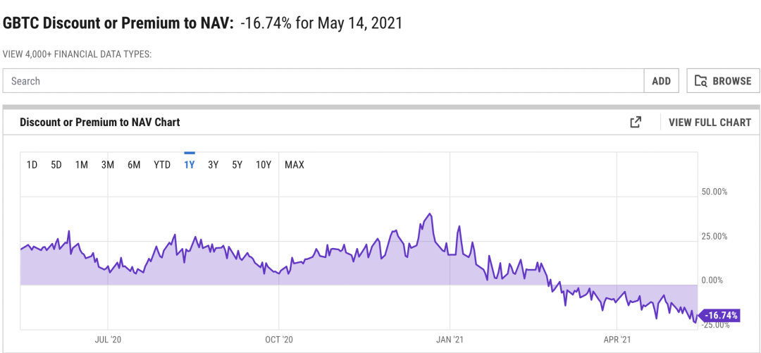 3月至今,灰度持倉比特幣數量減少超過5萬枚,發行的GBTC持續負溢價,一度超過20%,表明需求不足,拋壓較大。