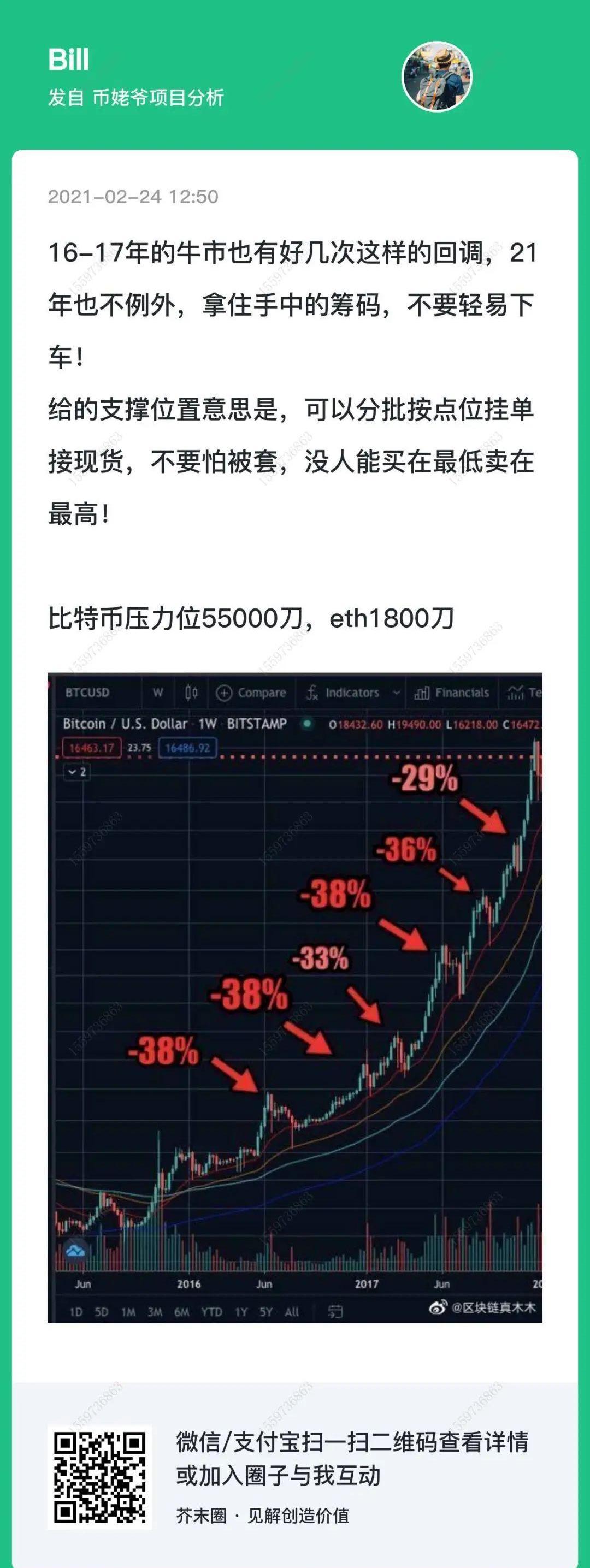 萬刀暴跌之后,大餅價格又出現了多次下探,在小時級別上成功守住了45000點的底線,并出現了超10個點的反彈,目前重回50000點上方。同樣的,以太坊從最高2000點最低跌至1350點,又反彈回1600點上方,讓新韭菜真正見識到了數字資產的高波動性。前幾天我剛說,大餅站上5萬大關后,杠桿常規的5倍杠桿計算,再出現大規模的爆倉,意味著大餅的波動要超過一萬美元,這一切來得有點快。目前大家最關心趨勢性問題,這一點我比較認可方舟資本CEOWood對這次暴跌的看法:本次比特幣下跌屬于健康回調。這一波浩浩蕩蕩的牛市,大餅拉高過程鮮有大級別的回調,上一波周線級別的回調還是在1月初,大餅從4萬跌破3萬,30%的跌幅同樣對合約市場造成巨大沖擊。這一次暴跌,結合下跌的幅度以及合約市場爆倉量,去杠桿的目的足夠明顯,且這一次還沒有觸及到MA30日均線。宏觀層面,昨晚幣圈朋友都在關注的美聯儲主席鮑威爾出席參議院聽證會,也給我們傳來好消息。鮑威爾重申將保持利率接近零,直到充分就業和通貨膨脹上升到2%,表示不會輕易收緊貨幣政策。現在大家都明白,這一輪以美股為首的資產飛漲,是美聯儲放水的結果,只要維持寬松貨幣政策,資產的價格定會繼續起飛。而對于幣圈來說,美股的穩定是一個重要的參考,宏觀層面不倒,幣圈就無需擔心外圍風險。圈內的話,Bitfinex、Tether與紐約州總檢察長辦公室長達兩年的訴訟案件也達成了和解,Bitfinex和Tether不承認有任何不當行為,并同意支付1850萬美元作為和解的一部分。1850萬美元對泰達來說不算大事,關鍵是可以換得USDT很長時間的穩定,結果來看對幣圈自然是好事。這次是典型的花錢息事寧人的又一事件,幣圈還無法根本擺脫這個困境,說到這里,又更加看好DeFi了。