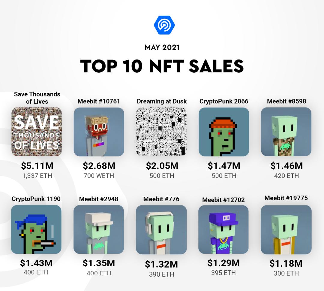 最后,5月份還有幾款令人難忘的暢銷游戲。NooraHealth的Save Thousands of Life,以510萬美元的價格售出。十分之六的銷售額屬于新推出的第三個 Larva Labs 系列,名為 Meebits。