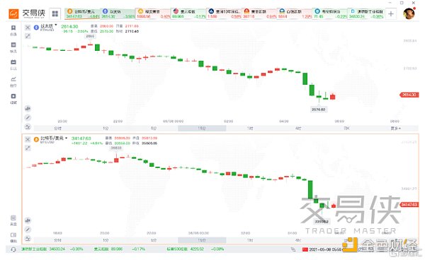 XRP/HKD-2.73%受MicroStrategy將發行4億美元債券以購買更多比特幣的消息影響,比特幣周一(6月7日)日內曾逆轉周末頹勢小幅走高,然而北京時間周二(6月8日)凌晨05:15左右,比特幣突然跳水,數分鐘內跌超2000美元,下破34000美元/枚,日內跌超5%。同時,以太坊跌破2600美元/枚。