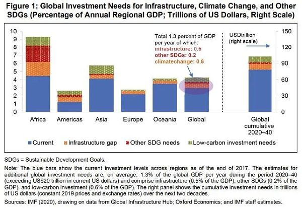 世界各國都面臨著擴大對可持續基礎設施投資的迫切需求,包括可再生能源基礎設施以促進低碳轉型并使其經濟符合《巴黎協定》和2030年議程。國際貨幣基金組織(IMF)最近估計,為實現可持續發展目標(SDGs),在基礎設施、低碳技術和其他領域的年度公共投資的額外需求將超過20萬億美元(IMF 2020)。特別是在發展中國家和新興經濟體,資金是一個關鍵的挑戰。