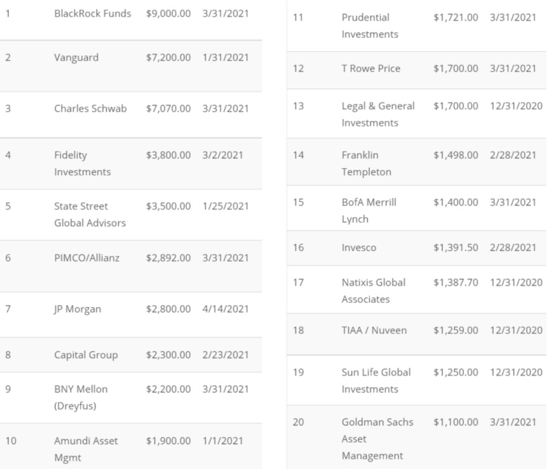全球最大的50家資產管理公司,如果加在一起,一共監管著78.9萬億美元。僅僅拿出1%用于加密資產投資資產都將達到7890億美元,這比整個比特幣7230億美元的市值還要多。