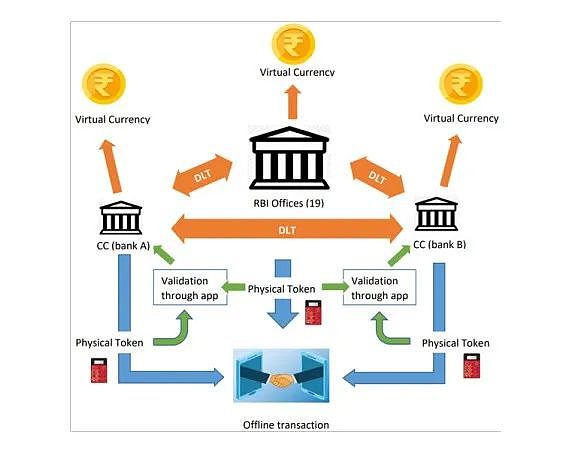 代幣貨幣可以有寬松的規范來提供現金。代幣可以有不同的顏色和不同的上限,并且可以在經過通用應用程序定期認證的用戶之間自由交換。代幣將繼續與發行CC保持聯系,CC將作為通過應用程序進行結算和驗證。每次用戶通過應用程序驗證物理令牌時,CC將捕獲令牌的現值,分類帳值將得到更新。最后,所有CC和RBI的賬本價值將通過分布式賬本技術進行更新。