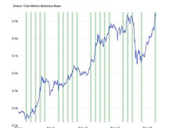分析發現,比特幣價格上漲主要發生在2020年11月的美國市場時間段,這是美國機構接受程度增加的一個跡象。