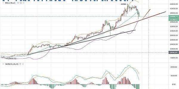 ??至于目前的行情走勢是否在為結束本輪行情做準備,這里我認為是有可能的,20000以上沒有出現過像樣的調整,這就不是一個好的現象。但是在下跌之后,高位的頂部是一定要做出來的,同時要給獲利籌碼離場和新籌碼進場的時間。所以目前再去說本輪上升是否結束還為時尚早,具體還是要關注35000的得失,是在繼續上行還是20000附近見很快就會有答案了。