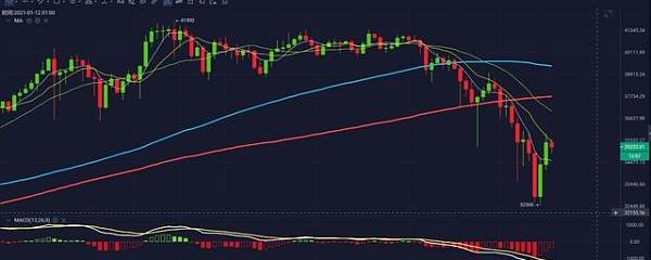 BTC4小時級別:4小時級別今日進行深度回調,最低到89線附近的支撐位附近。4小時級別的上漲趨勢被打破,形成了下跌的空頭排列,目前MACD向下持續放量。在89線的支撐位附近暫時得到支撐。35000點是整數的支撐位附近,如果跌破,可能要向下繼續看到33425附近。順勢做單,不要逆勢。做好止損!