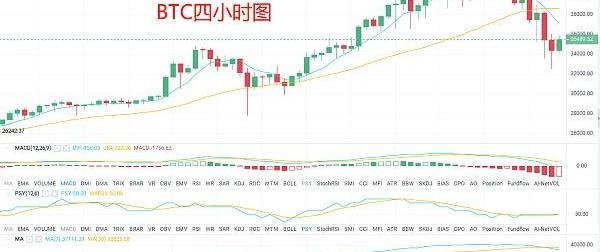 從4小時圖來看,目前價格34950置附近波動,MACD紅色動量持續放量,KDJ三線目前處于50軸下方上揚趨勢,CCII線超賣區上揚趨勢,由此可見短期走勢還是一個震蕩行情,操作上建議回調多為主。策略每天全網公開,實盤操作,現價報單,簡單粗暴,時刻跟緊,及時抓空補倉,歷史現單可查