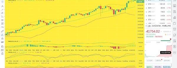 比特幣今日直接突破昨日高點,連續突破40000,41000兩個關口,目前看來并未停下來的跡象,
