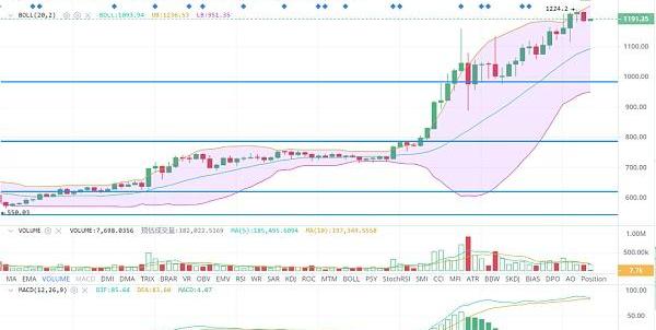 以太突破前期高點,不過macd已經形成嚴重的背離。風險遠大過收益。短期不要參與。支撐970,壓力1200。
