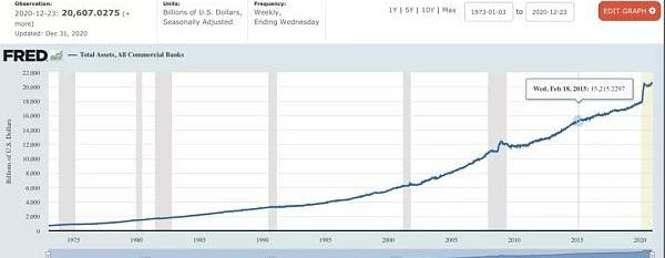 ?圖1:美聯儲2020年12月數據,美國銀行總資產超過20萬億