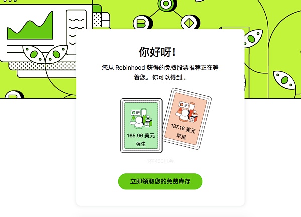 Robinhood另一項吸引新用戶的舉措是,只要用戶在Robinhood注冊,就可以獲得一股免費股票。