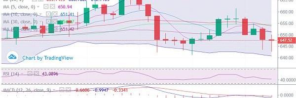 以太坊方面一小時圖上看,早間K線四連陰下跌,近20個點的下探,在觸及布林下軌后,受到支撐隨后幣價就在布林中下軌區間震蕩,下午3點的時候,一根陽柱拉升突破布林中軌,目前的價格在布林中軌上方運行,附圖指標上來看,MACD空頭勢能呈縮量形態,慢線在零軸附近粘合,RSI三線排列運行,綜合上方均線以及指標信號,晚間操作建議還是高空為主。658-661區域布局空單,目標看640。