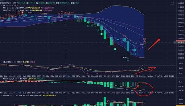 15分鐘圖看?K線在下軌開始向上反彈,支撐線在21800形成支撐,MACD快慢線在零軸下方粘連運行有形成金叉的可以,綠色動能減弱,KDJ三線向上發散運行。道哥分析下跌后回調蓄能,短線還是做多的走勢,盈利點100-200之間。