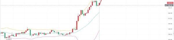 近期行情走勢波動較為偏大。正是我們把握大行情的好時機。此時我們應趁機抓取利潤。現在我們從1小時級別圖可以看到,經過昨天的一次下跌回調后。今天幣價繼續走入穩健的行情。目前幣價斐波那契38.2%分割線附近波動。可以看到下方支撐還是比較強勁的。另外,幅圖MACD綠柱動能在持續縮量。KDJ三線均呈朝上發散運行姿態。因此,目前我們應低位多單為主。