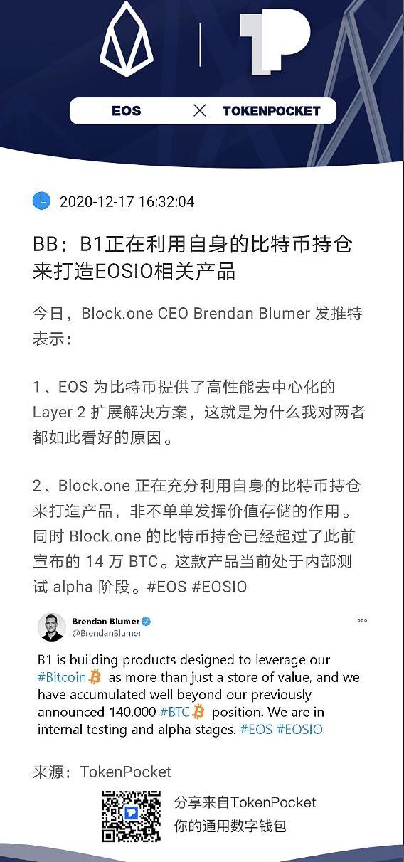 二、BB:B1正在利用自身的比特幣持倉來打造EOSIO相關產品