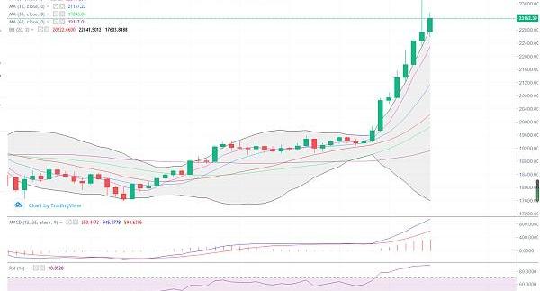 ???比特幣昨日晚間一路上攻至20700上方,凌晨收線后沒有給到回調修復的機會,反而繼續拉伸,到目前為止一直處于持續上攻狀態,中間有小幅回落,但整體多頭趨勢依舊勢不可擋,日內漲幅3000多點,再次刷新比特幣新高23850。