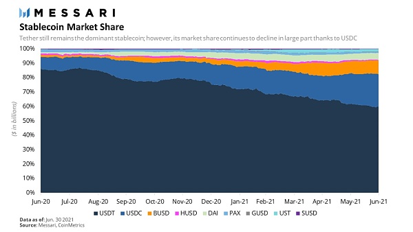 第二季度初,去中心化穩定幣的供應量達到了歷史新高,占穩定幣總供應量的10%。