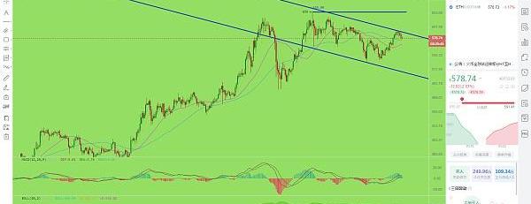 以太坊今天震蕩走勢反彈力度有點弱勢,早間我們給到回踩587附近多一次,最終反彈最高590附近,白盤并沒有延續,而是在598附近形成了阻力向下,所以早間587多單,反彈589-590出局觀望,而目前整體趨勢還是要看反彈是否能夠站穩590上方,并得到延續才有多單的反彈,目前空倉觀望,晚間思路582附近可以進場空,空單目標看575-568-555附近